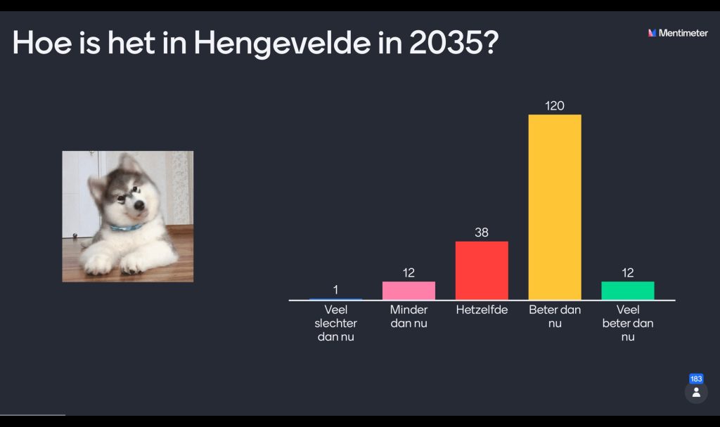 Er werd geschetst hoe hard de wereld draait op dit moment. Spotify, Netflix zijn al bijna niet meer weg te denken. Hoe ziet in deze context de wereld er in 2045 uit? Dat maakt het belang van samen nadenken over de toekomst alleen maar groter. Van wie is de toekomst van Hengevelde? Van alle mensen! Het gevoel van mede eigenaarschap, daar was het om te doen.